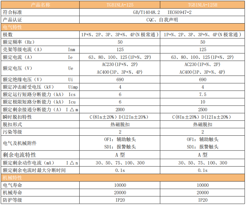 TGB1NLA-125(H)剩余电流动作断路器